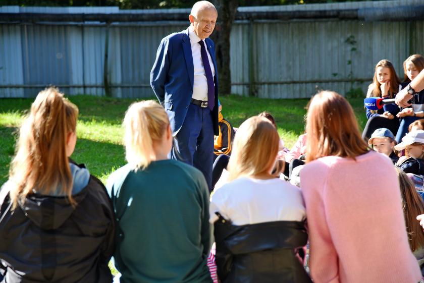 Дети провожали Виктора Бабурина до машины, он продолжал рассказывать о знаменитых людях Калужской области и героях Великой Отечественной войны.