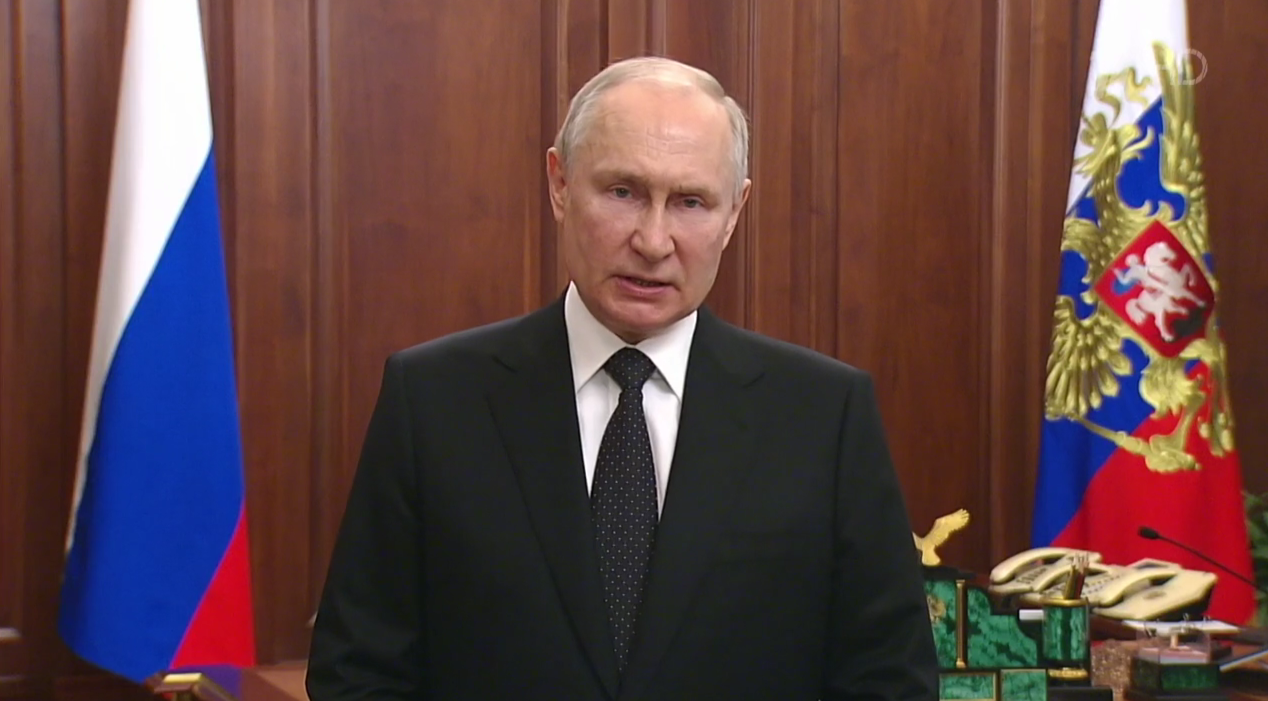 «Любая внутренняя смута - смертельная угроза для нашей государственности, для нас, как нации. Это удар по России, по нашему народу. И наши действия по защите Отечества от такой угрозы будут жёсткие. Все, кто сознательно встал на путь предательства, кто готовил вооружённый мятеж, встал на путь шантажа и террористических методов, понесут неминуемое наказание, ответят и перед законом, и перед нашим народом»,