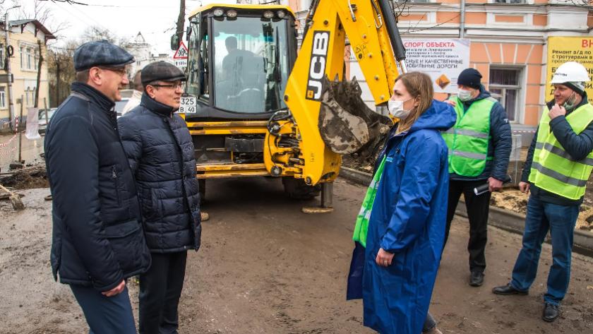 Владислав Шапша и Дмитрий Денисов осмотрели улицу Луначарского. Здесь начинается ремонт улицы с тротуарами общей площадью 18,9 тыс. кв. метров на участке протяженностью порядка 1,4 км.