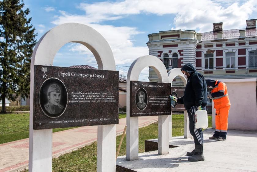 В настоящее время здесь активно ведется подготовка к предстоящему 75-летию Победы: ремонтируют воинский мемориал на центральной площади города, приводят в порядок дворовые территории.