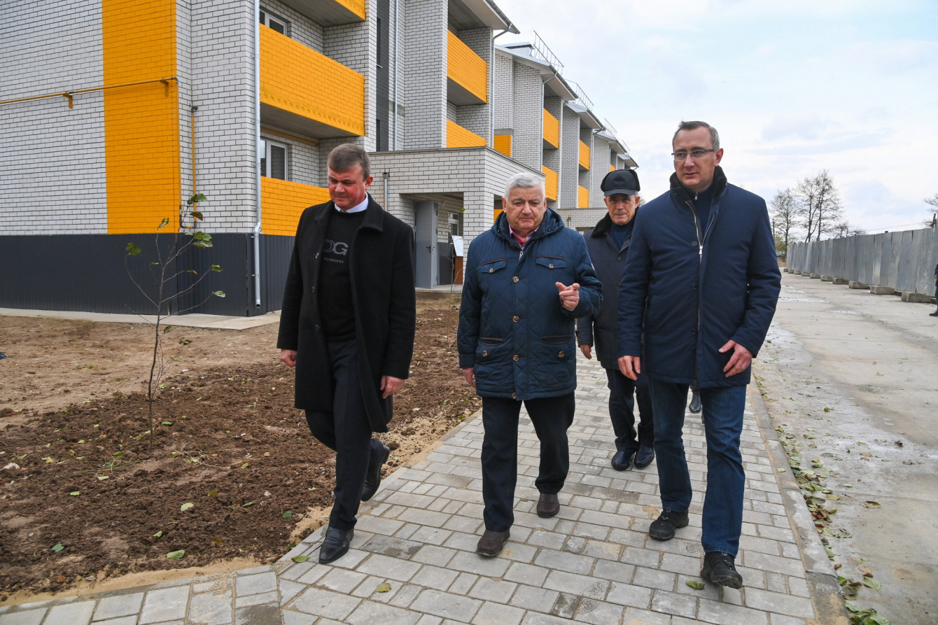 Глава районной администрации Игорь Феденков сопровождал губернатора и рассказывал ему о инфраструктурных проектах района.