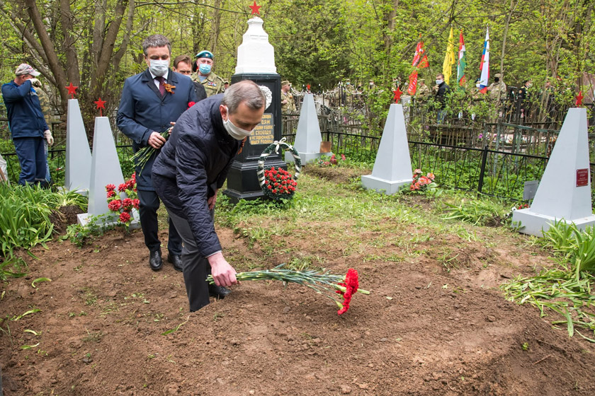 Церемония состоялась накануне празднования 75-й годовщины Великой Победы на Мемориальном воинском кладбище. Глава региона почтил память погибших минутой молчания и возложил цветы к их могиле.