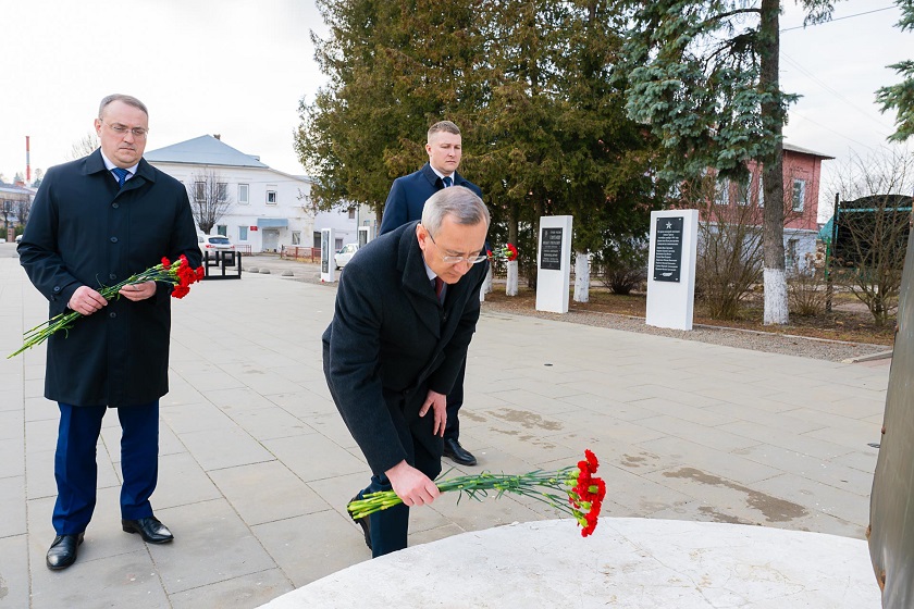 Вместе с Владиславом Шапшой память погибших героев Отечества почтили глава администрации Тарусского района Михаил Голубев и главный федеральный инспектор по Калужской области Дмитрий Колозин.