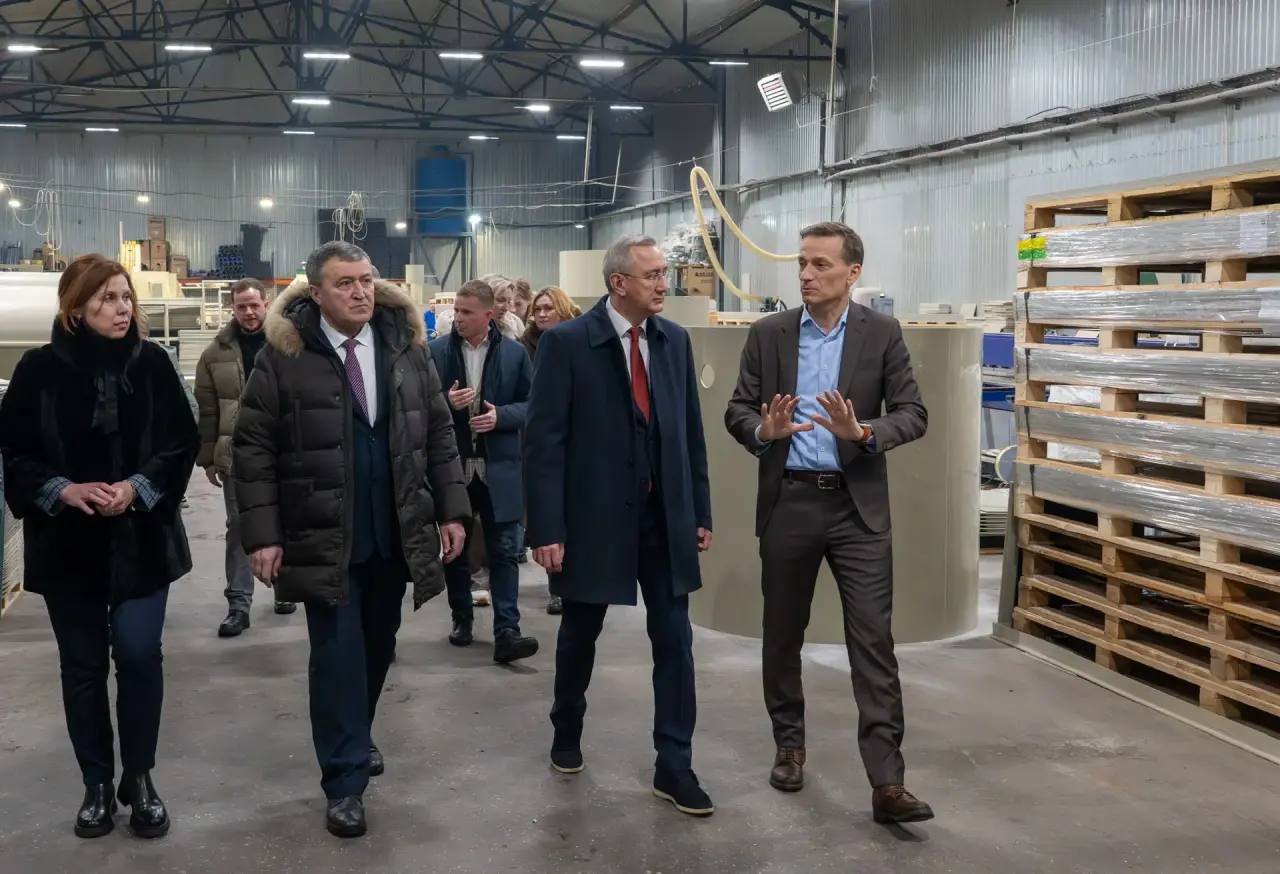 Первым пунктом стал завод «Базис», где делают септики — как для частных домов, так и для промышленных зон. Производство работает на отечественном сырье и каждый час здесь изготавливают одну станцию очистки. Руководство предприятия призналось губернатору, что условия для бизнеса в Калужской области их устраивают, поэтому расширяться и увеличивать линейку продукции решили именно в Жуковском районе.