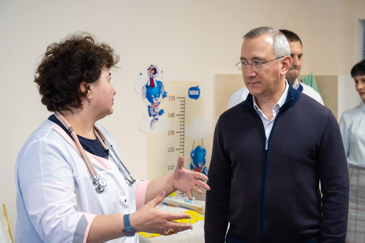 Во время рабочей поездки глава региона оценил результаты ремонта поликлиники и пообщался с маленькими пациентами.