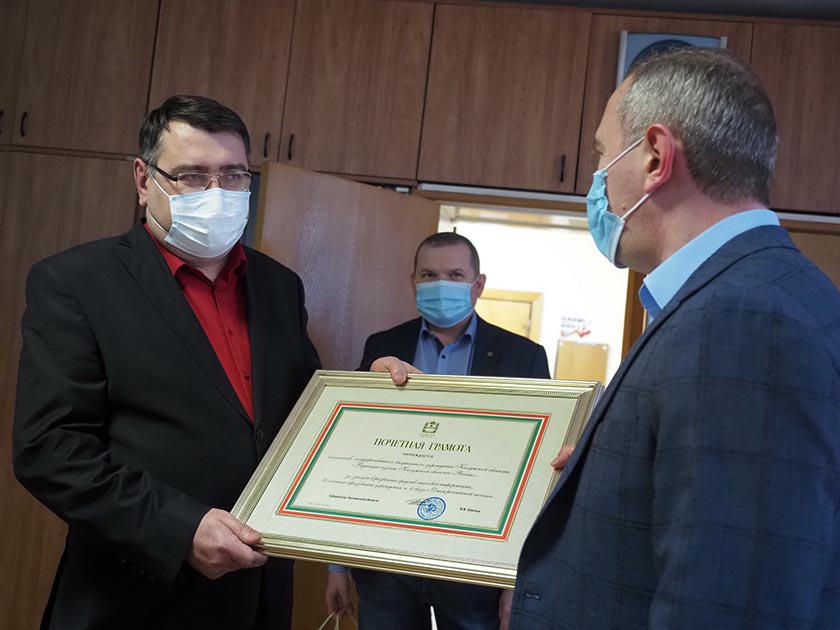 Глава региона пришел в редакцию не с пустыми руками. Поблагодарив журналистов за преданность делу и активную жизненную позицию, он вручил коллективу газеты «Весть» Почетную грамоту губернатора Калужской области за заслуги в развитии средств массовой информации, 30-летием со дня образования издания и в связи с Днем российской печати.