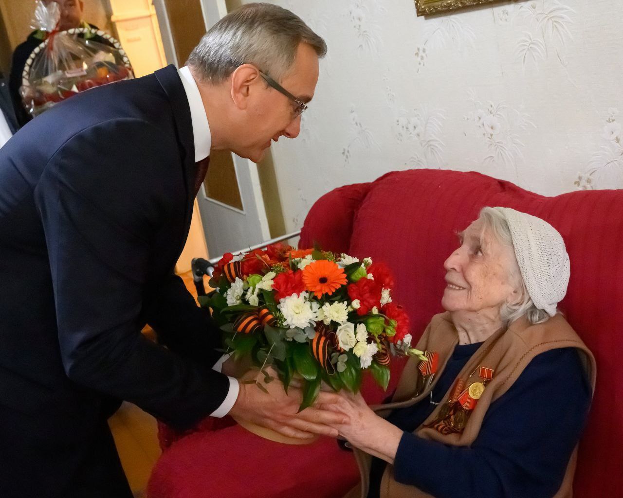 Владислав Шапша поздравил участницу Великой Отечественной войны Валентину Абрамову с Днем Победы. Еще в 16-летнем возрасте она записалась в санитарный отряд. Затем девушка окончила курсы телеграфистов и работала на железной дороге в тяжелых условиях военного времени. После войны она продолжила работать телеграфисткой, а ее стаж составил 45 лет.