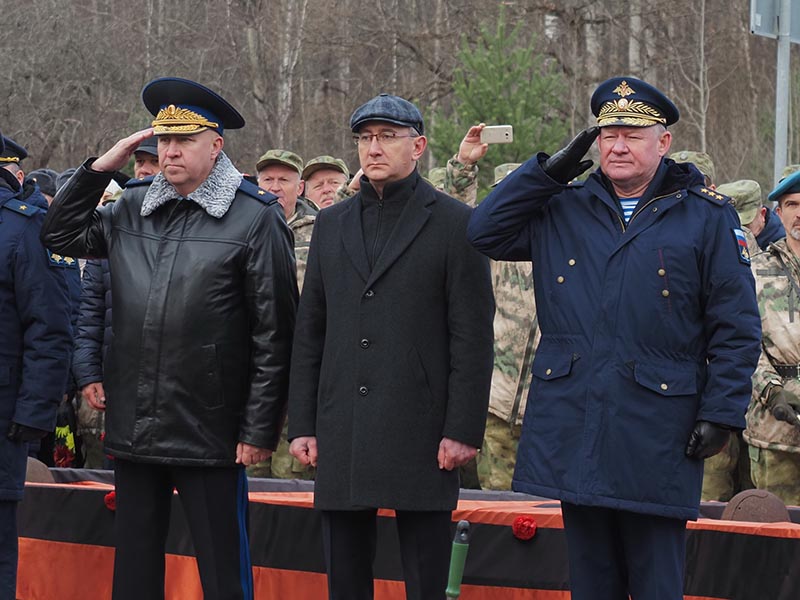 Траурный митинг открыл командующий воздушно-десантный войсками Герой Российской Федерации генерал-полковник Андрей Сердюков. Он рассказал об истории проведения Вяземской воздушно-десантной операции.