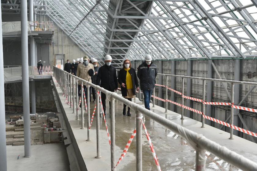 Здесь завершается строительство нового трехэтажного здания площадью 12,5 тыс. кв. метров, врезанного в склон береговой линии Яченского водохранилища.