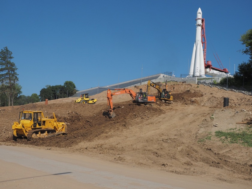 «Сейчас идет завоз грунта, вывоз неустойчивого грунта, уплотнение, нарезка дорожек. Наряду с лесенкой, которая расположена рядом, появится возможность беспрепятственно подниматься и спускаться и на велосипедах, и с колясками, и маломобильным гражданам», - сказал Владислав Шапша.