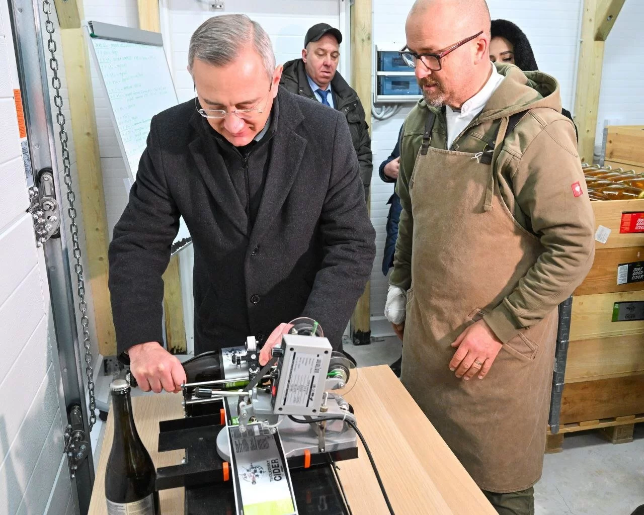 Владислав Шапша узнал у фермера о хозяйстве, фруктовом саде, который уже начал плодоносить, традиционных технологиях, современном оборудовании и людях, трудящихся на предприятии. Также глава региона попробовал себя в производстве сидра.