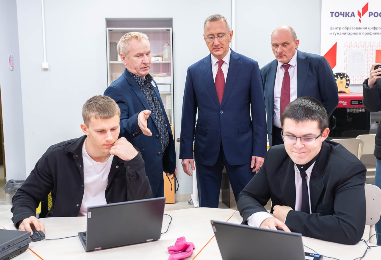 Затем губернатор посетил среднюю общеобразовательную школу №1 Жиздры, капитальный ремонт которой начался в 2024 году и продолжится в 2025 году. В ходе работ здесь уже отремонтировали помещение обеденного зала, пристройку, кровлю, фасад, отмостки, спортивный и актовый залы.