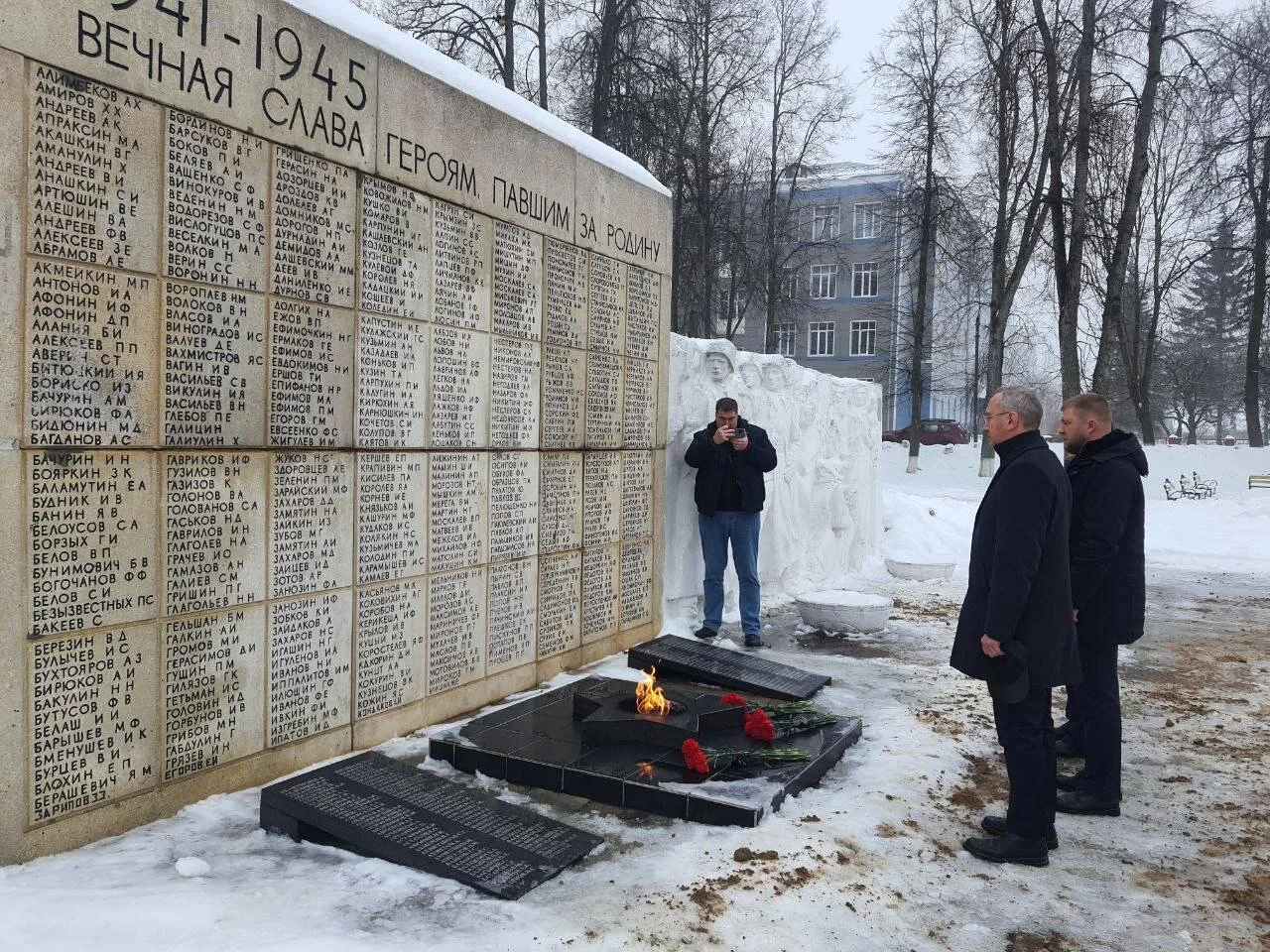 В понедельник. 12 февраля, губернатор Владислав Шапша проводит рабочую поездку в Думиничском районе. Первым мероприятием стало возложение цветов к «Братской могиле».