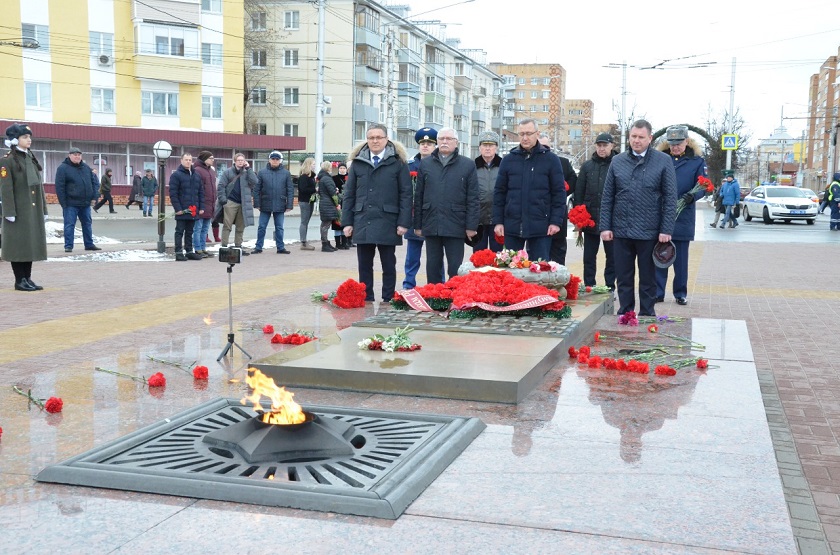 Участники церемонии возложили на гранит памятника красные гвоздики и почтили минутой молчания память всех защитников, отдавших свои жизни за Отечество.