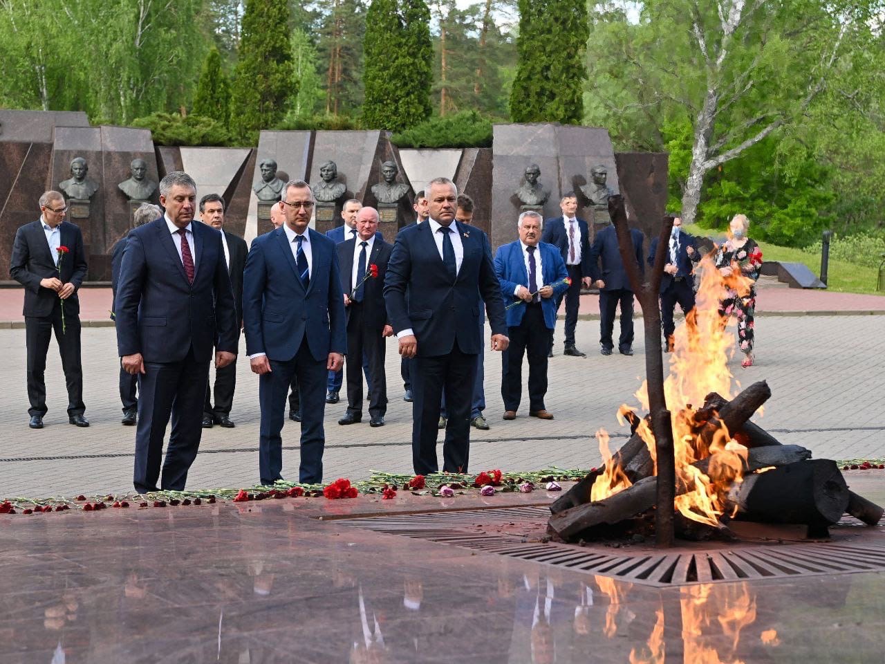 Во время посещения мемориала Владислав Шапша вместе с губернатором Брянской области Александром Богомазом почтили память павших бойцов. Возложили цветы к Вечному огню и на площади Партизан в Брянске.