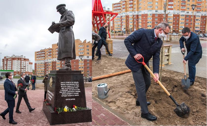 Открытие сквера приурочено к 75-летию Победы в Великой Отечественной войне, благоустройство проводилось в рамках реализации муниципальной программы Калуги «Формирование современной городской среды», входящей в нацпроект «Жилье и городская среда».