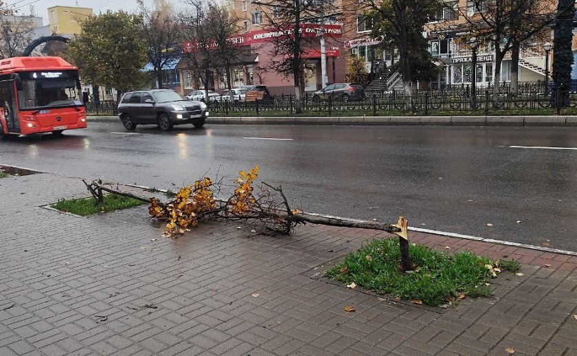 В конце прошлой недели на улице Кирова в Калуге произошёл акт вандализма: неизвестные сломали две липы, разбили стекло на информационной тумбе и вывеску.
