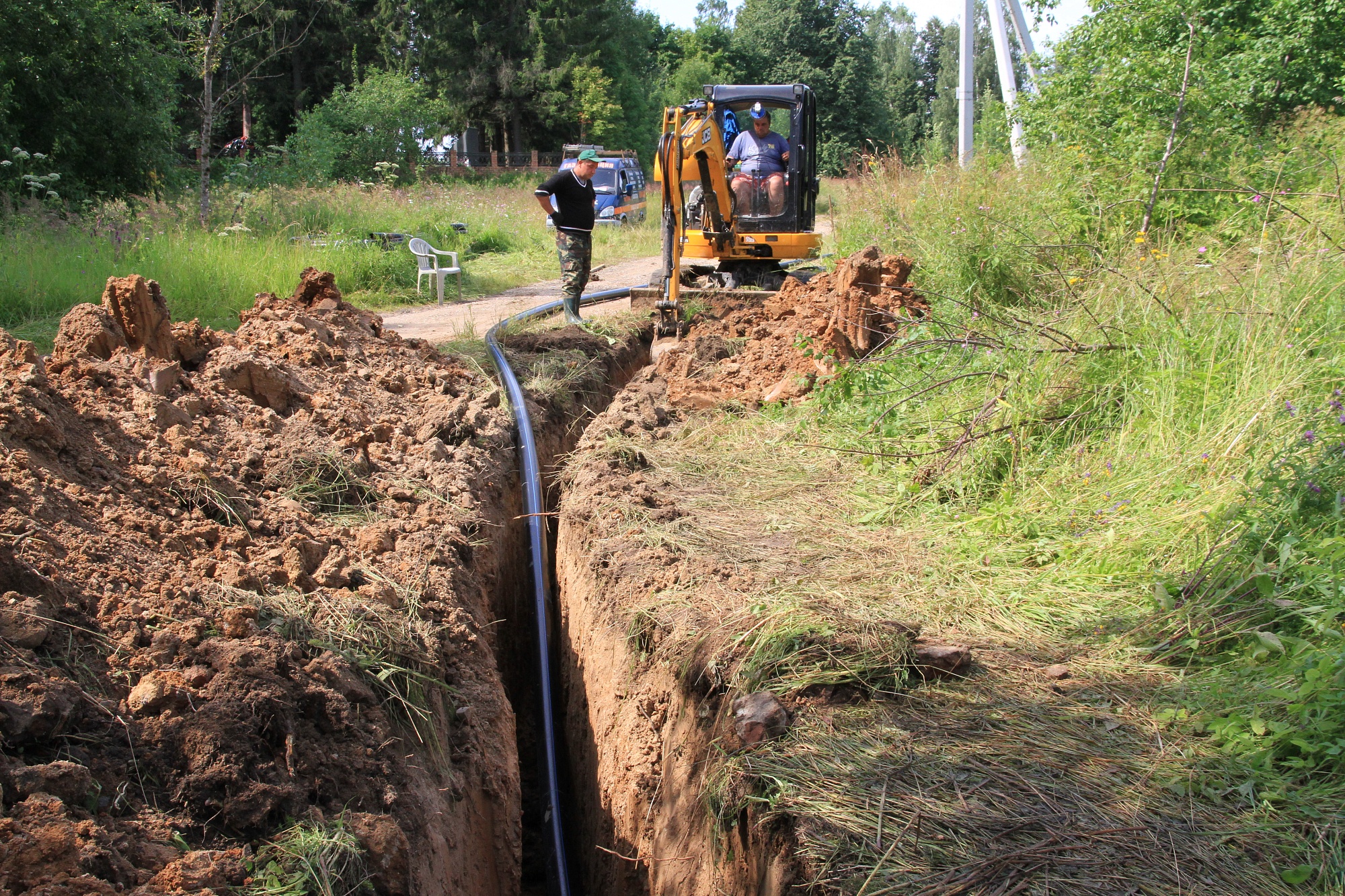 Сейчас идут ремонтные работы – строители роют траншею и подготавливают ее под укладку новых труб. Одновременно готовят котлованы, в них будут устанавливать водяные колодцы. Технических сложностей в процессе земляных работ не возникает – прежде чем их начать, подрядчик согласовал трассу прохождения водопровода с компаниями, которым принадлежат другие инженерные сети. Согласно плану, здесь будет проложено около 900 метров новых водопроводных сетей.