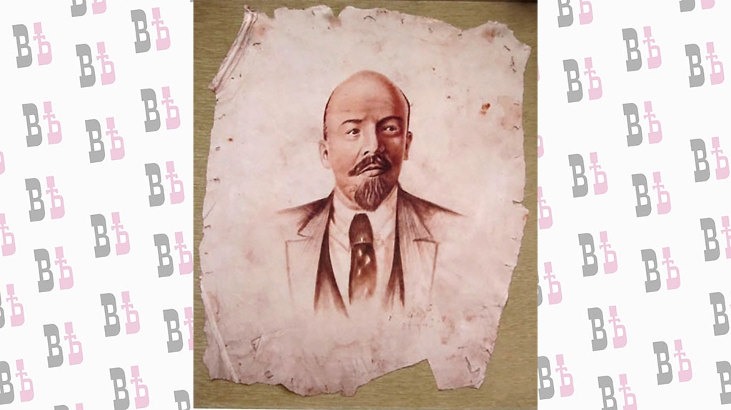 Портрет В.И. Ленина, выполненный отваром из трав на куске парашютного шелка неизвестным художником. Служил знаменем особого партизанского полка майора В.В. Жабо.