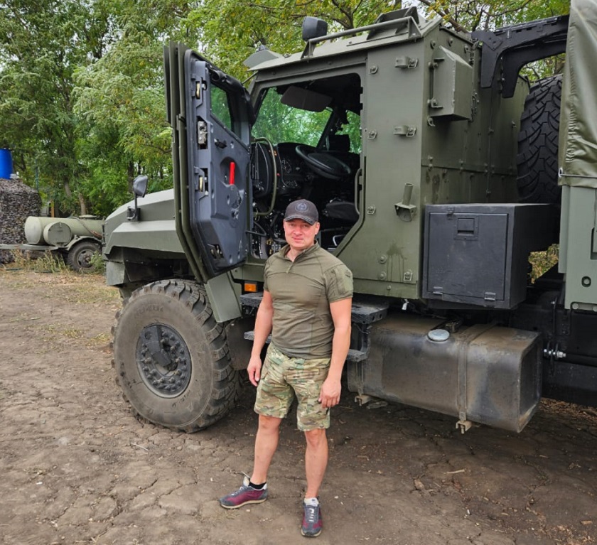 Он офицер в отставке, и сейчас часто ездит на Донбасс, доставляя гуманитарный груз.