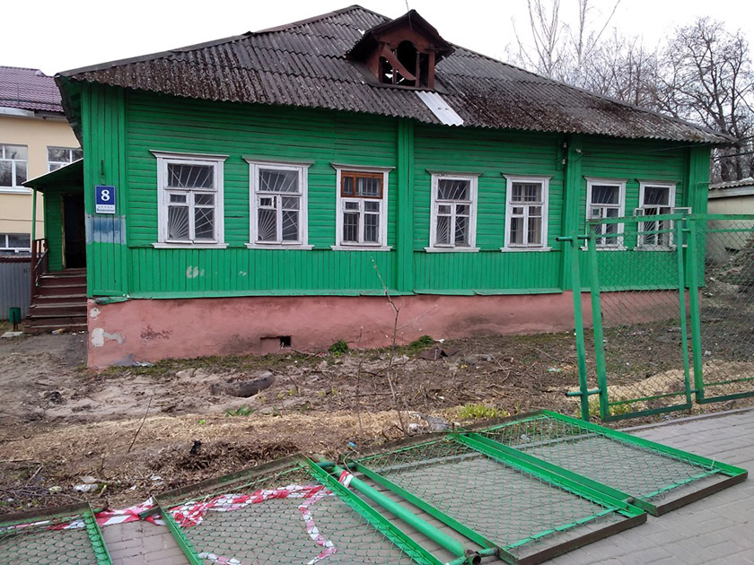 — Это зеленый деревянный дом, где работало до недавнего времени домоуправление ЖРЭУ. Меня удивило, что в здании открыты двери, я зашел внутрь и увидел, что практически вся коридорная система выгорела, частично сгорела крыша. Одноэтажный дом 8 на улице Воскресенской предназначался под музей. Калужане обратились к городским властям с инициативой открыть здесь музей старинной улицы Воскресенской.