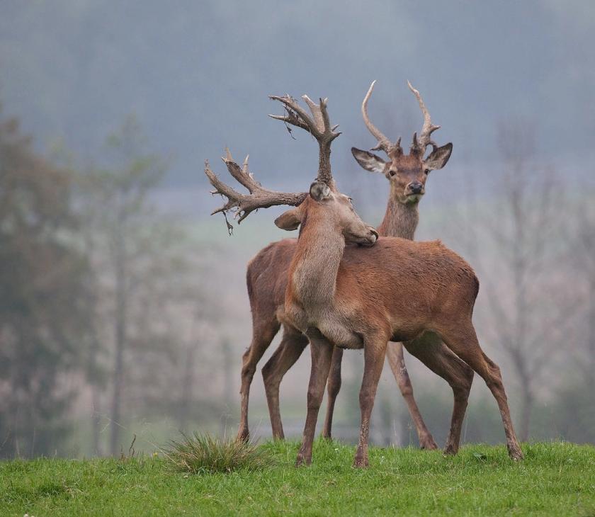 В «Калужских засеках» благородные олени постоянно не обитают, лишь изредка проходят через наши охраняемые пространства. В этот раз самец и самка попали в объектив автоматической камеры в долине реки Дубенка.