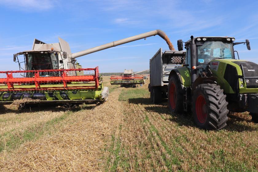 На сельхозпредприятии возделывается пшеница восьми сортов. От сева до уборки проведен комплекс агроприемов, необходимых для налива колоса полновесным зерном. Сейчас здесь обмолачивают участки озимой пшеницы – она занимает 3 740 гектаров. Яровая еще дозревает, ее начнут убирать с середины месяца. На очереди и рапс.