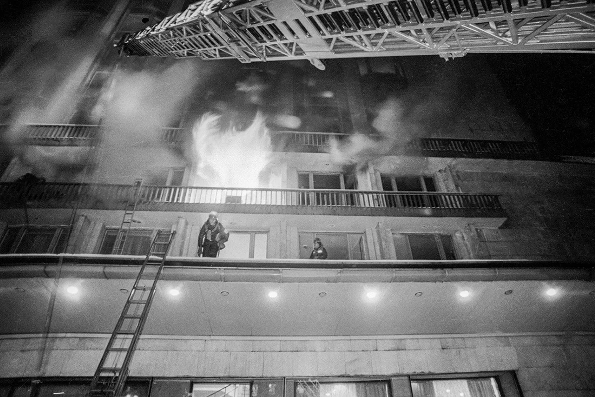 Мы с товарищами взяли штурмовки, поднялись на 11-й этаж, а оттуда на 22-й - в башню, где находился ресторан. Мы должны были эвакуировать отрезанных огнем людей. Среди них было много иностранцев. Все в панике. Потребовалось немало крепких русских слов, чтобы навести порядок и по штурмовым лестницам с балкона на балкон спустить их вниз, - вспоминает Дмитрий Бурлака.