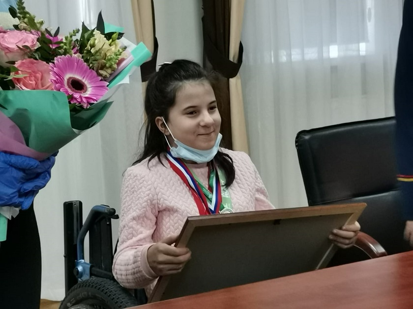 В детстве София осталась без попечения родителей. Она не может ходить из-за дефекта, но сейчас это не мешает девочке развиваться и заниматься любимым делом – триатлоном, который включает в себя плавание, велогонки и бег. София Петрухина – единственный в регионе бегун-колясочник.