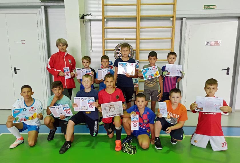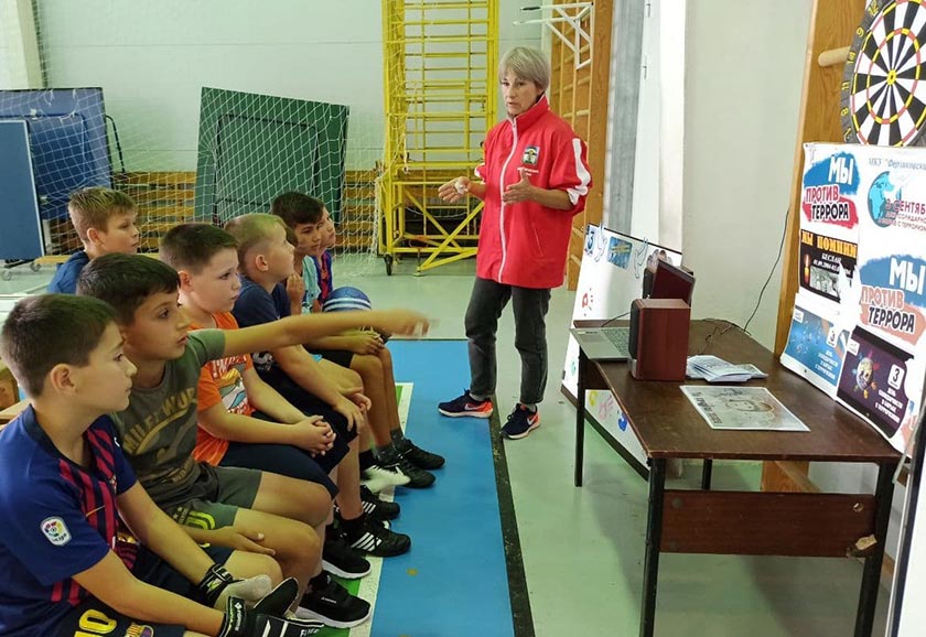 Заместитель директора по спортивной работе Александра Зотова рассказала ребятам об истории возникновения терроризма и о наиболее известных терактах последнего десятилетия, в том числе и о трагедии в Беслане. Юные футболисты познакомились с хронологией трагических событий, просмотрели презентацию «Борьба с терроризмом», приняли активное участие в беседе «Мы вместе в борьбе с терроризмом».