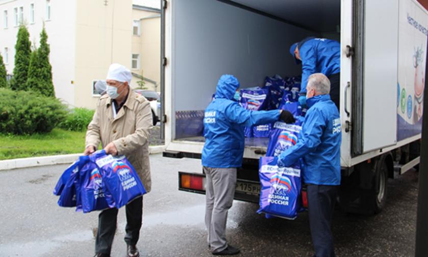 Добровольцы доставляют продуктовые наборы нуждающимся в этом людям, средства индивидуальной защиты и аппараты ИВЛ в больницы. В рамках акции «Спасибо Врачам» в больницы по всей стране передали 200 автомобилей. Совместно с торговой сетью «Магнит» «Единая Россия» доставила 360 тысяч чайных наборов медработникам, которые работают в «красной зоне». Партия передала в регионы несколько миллионов масок. Часть средств индивидуальной защиты предоставил крупный онлайн-ритейлер Wildberries.