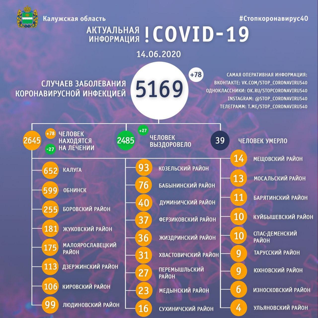 По данным штаба, в регионе 5169 подтверждённых случаев заболевания коронавирусной инфекцией. За последние сутки число заболевших выросло на 78 человек.