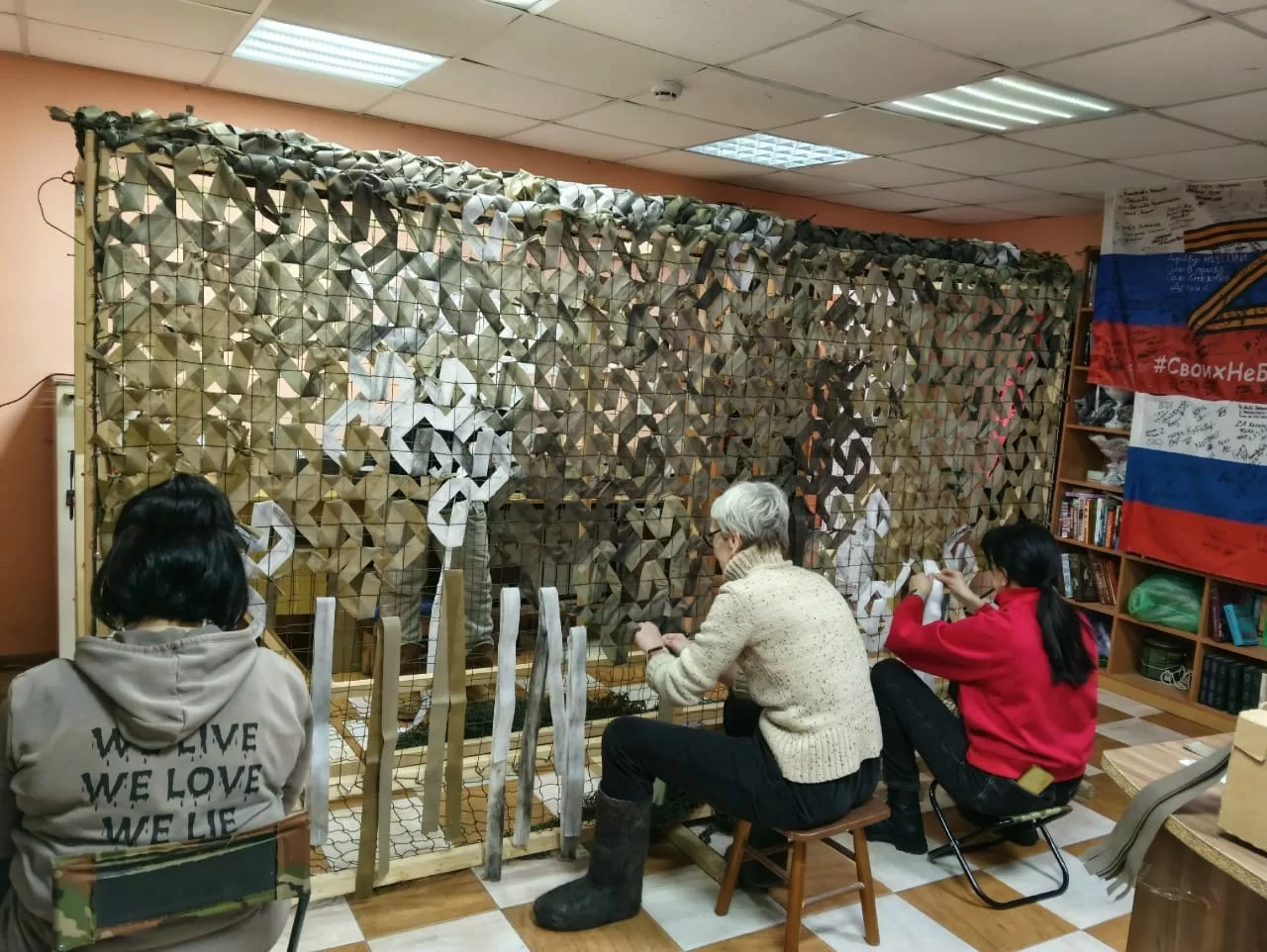 За три года работы добровольческая группа «Кондрово НАШИМ» сплела более 1900 маскировочных сетей