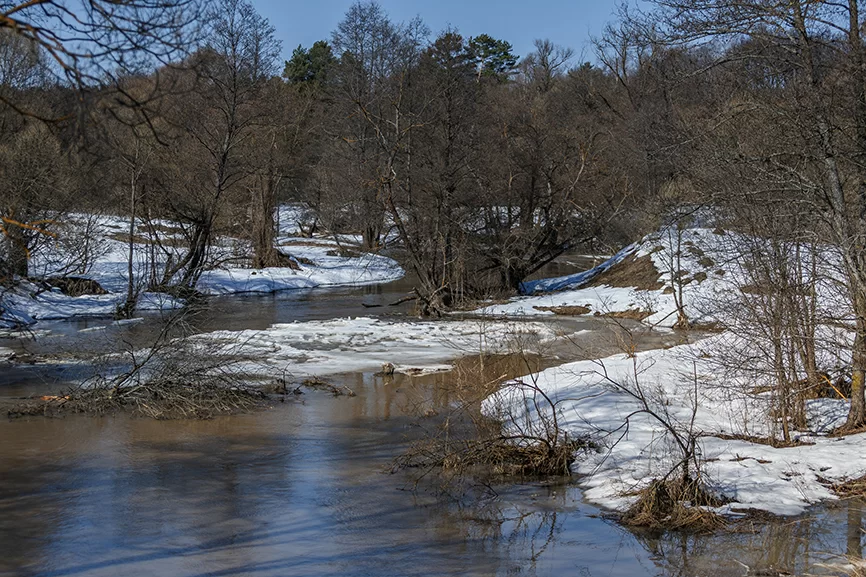 Природа начинала пробуждаться от зимнего сна, уже пригревало солнце, вокруг стволов деревьев появлялись проталины. Вот вдали стала видна церковь красного кирпича, показались и сельские дома по обоим берегам речки Мышеги, вскрывшейся ото льда. Мы приближались к цели своей поездки.