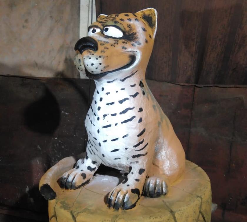 Скульптуры чудесных зверей он изготавливает собственными руками с помощью подручных материалов – цемента и краски, инструментов, имеющихся в мастерской и с участием добровольных помощников.