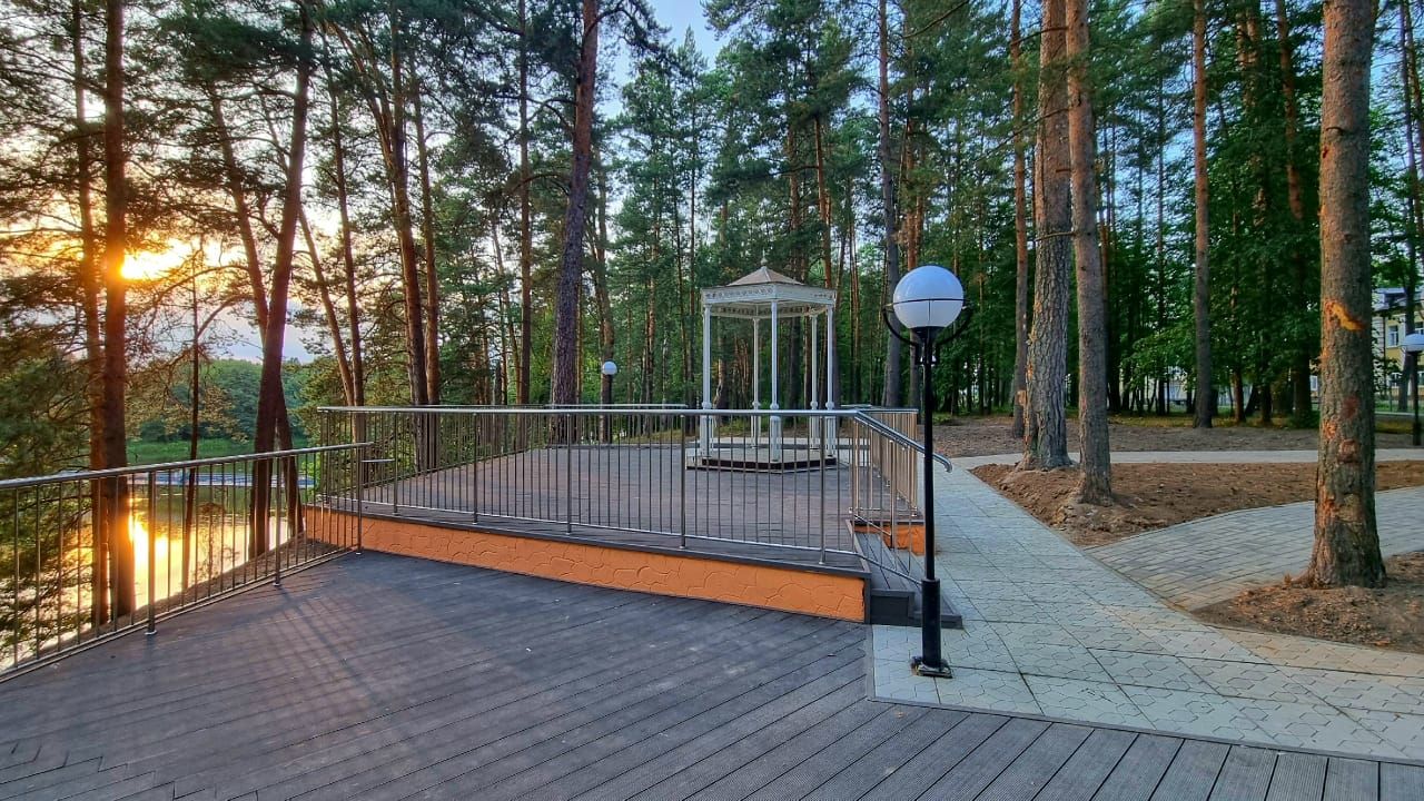 Территория возле пруда до войны была центральным городским парком с театром, танцплощадкой и полянами с рыжиками. Но затем это место забросили. И только в последние годы оно начало возрождаться. Здесь появились скамейки и тротуары, освещение, артобъекты. А над берегом пруда теперь возвышается открытый танцпол. В бору появился мостик к острову на пруду, а на самом островке расположилась поляна свадеб. Она уже стала местной достопримечательностью. Также здесь были установлены спортивная и детские площадки и даже оборудована трасса для катания на лыжах и роликах.