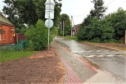 Второй объект благоустройства, которое было завершено в прошлом году, – устройство пешеходной зоны вдоль улицы Мичурина. Здесь расположены два социальных объекта: средняя школа и детский сад № 2. Дорожное движение здесь интенсивное, по этой дороге ездит школьный автобус, поэтому остро назрела необходимость привести в порядок часть улицы.