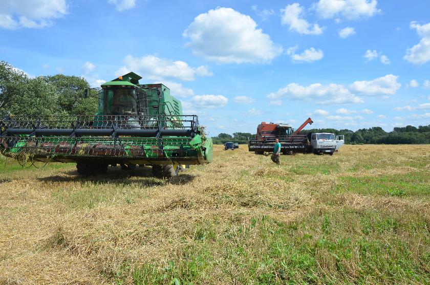 К уборке здесь приступили еще на прошлой неделе. Потом делали перерыв на три дня из-за дождей. А сейчас – самая жаркая пора. Отвлекаться нет причин. Сенокос завершили буквально на днях, так что теперь все силы и средства брошены на уборку зерновых.