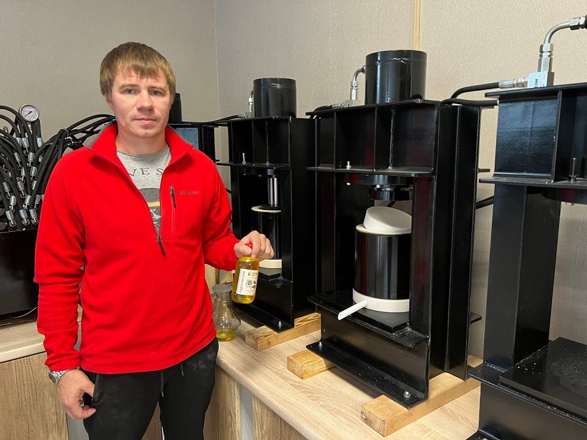 - рассказывает предприниматель.Денежные средства, полученные от фонда, были потрачены Дмитрием на приобретение оборудования для производства масла. В производстве у Дмитрия 12 прессов двух разновидностей на 54 и 74 тонны. Пресса параллельно присоединены к маслостанции гидравлическими рукавами, а автоматика позволяет поддерживать максимальное давление во всех бочонках.
