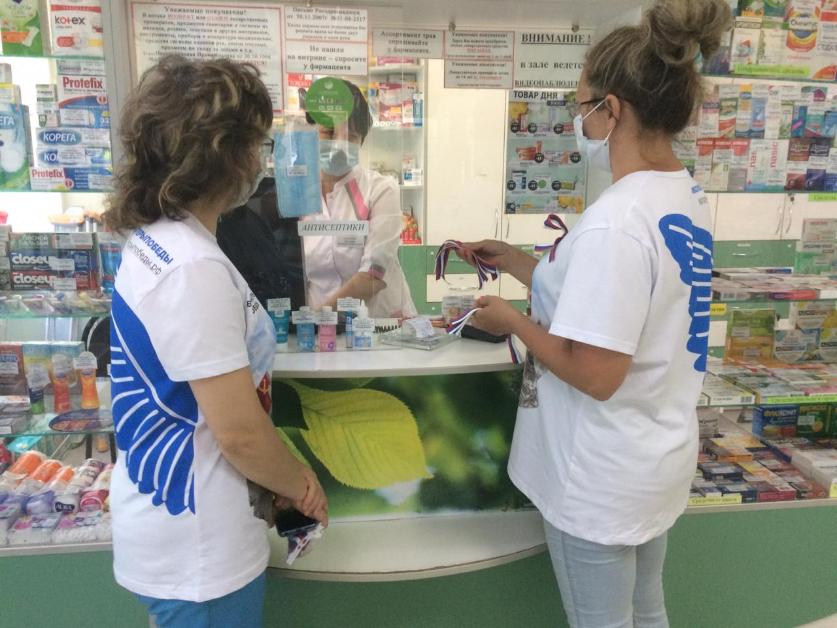 Одновременно на нескольких площадках прошла акция «Ленточка Триколор» - «Молодогвардейцы» вместе с Волонтерами Победы и работниками культуры со словами поздравлений вручали людям ленточки цветов российского флага.