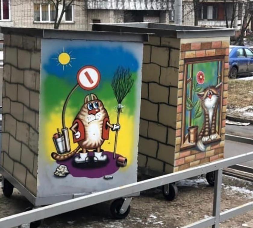 В популярных социальных сетях Обнинска появились фотографии нового «дизайна» мусорных баков.