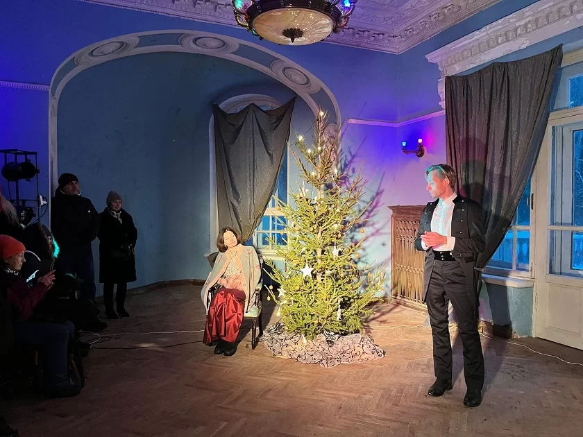 В этом году Дача Морозовой принимала гостей 4 и 6 января. Спектакль-экскурсия помог собравшимся побывать в прошлом, познакомиться с судьбой «дворянского гнезда» и людьми, обитавшими здесь в разные исторические периоды. Перед зрителями предстали основатель усадьбы Виктор Обнинский, меценатка Маргарита Морозова, владевшая дачей в 1900 – 1917 гг., педагог-экспериментатор Станислав Шацкий, проводивший здесь занятия для детей и учителей, обучавшихся на педагогических курсах в 1920-е гг., маршал Георгий Жуков, руководивший отсюда в 1942-м частями Западного фронта.