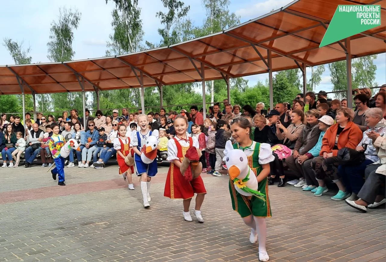 Так, недавно в городе прошёл фестиваль «Петухи и гуси в городе Тарусе». Праздник организовали на новой площадке в «Березовой роще», где благодаря участию в нацпроекте благоустраивается территория. Артисты уже выступили на новой сцене, а зрители смогли расположиться в удобных местах.