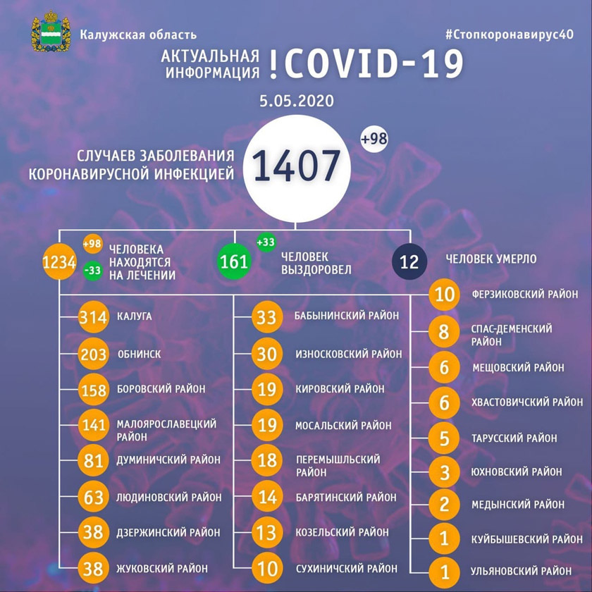 Согласно оперативным данным, число заболевших в регионе составило 1407 человек. Выздоровели 151 человек – на 33 больше, чем вчера. Умерли 12 человек.