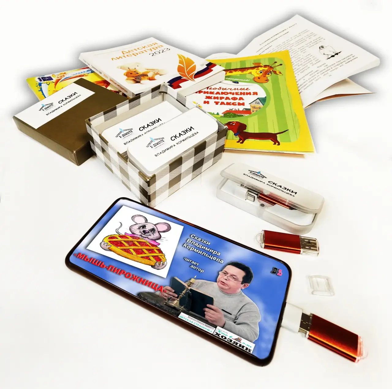 Теперь же 27 сказок, записанных на флешки, дети смогут слушать дети Донбасса как с компьютера, так и со смартфона. Также автор передал печатные экземпляры литературного сборника и детского журнала, где также опубликованы его произведения.