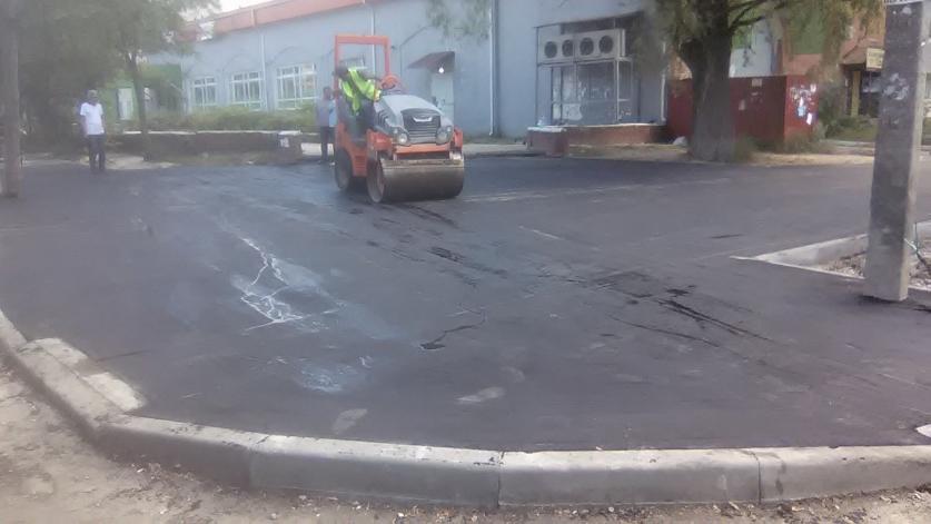 Во время ремонта этой улицы дорожникам пришлось восстанавливать систему водоотлива от частных домов. Уложен выравнивающий слой, в асфальт закатываются тротуары.