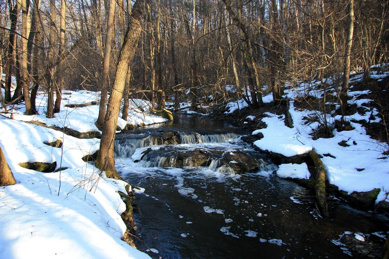 Перекат Каменный Мост на реке Росвянке и водопад Бестенский Перелом на Бестенке (приток Серены). Мне никогда не удавалось застать на них красивый лед,  но и просто в снежных берегах они выглядят неплохо. На Росвянке только в полную воду «работают» оба уступа, как на снимке.