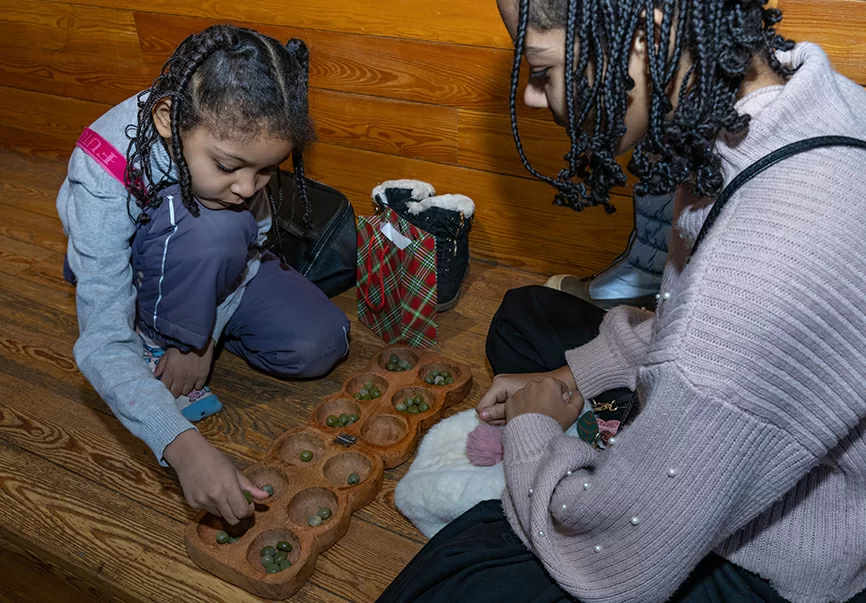 Мы с напарницей быстро разложили по лункам фишки, похожие на кофейные зерна, - это оказалось самым простым. А после начались проблемы: после нескольких ходов у меня опустела одна лунка, затем другая. В итоге мой «урожай» вышел крайне небогатым, а сопернице удалось захватить большинство фишек. Решили партию повторить, но опять что-то пошло не так и моя логика вновь не устояла против женского ума.