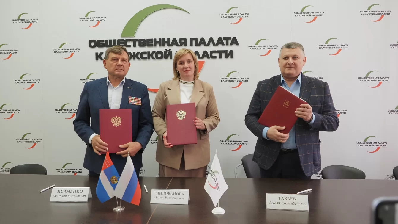 Общественная палата Калужской области подписала сегодня партнерские соглашения о взаимодействии с Калужской областной организацией ветеранов и региональным отделением Ассамблеи народов России.