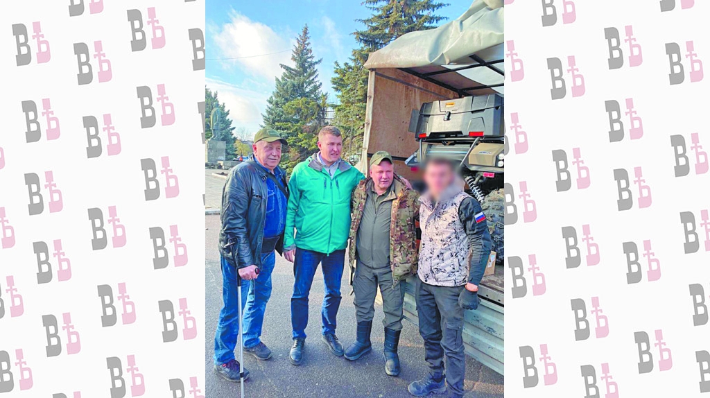 Владимир Козлов, Михаил Голубев и Алексей Волков передают гуманитарную помощь землякам-артиллеристам.